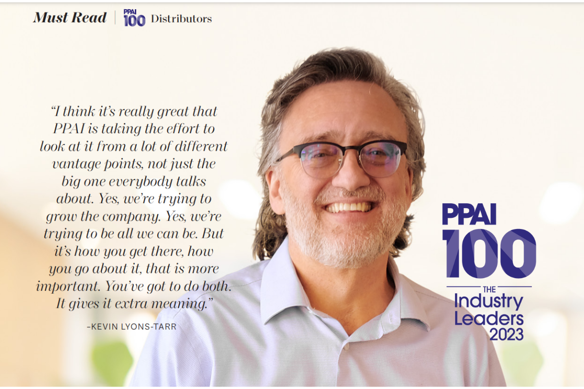 The occasion is obvious. Never mind regaining its spot as the top seller, which everyone has known for months. 4imprint can now officially be called the leading distributor in the promo industry, according to our first-ever PPAI 100 calculation. Lyons-Tarr says he loves the approach we have taken for this new yearly project, considering not only last year’s revenue in the industry rankings, but revenue growth over the previous three years and all the other scoring factors.