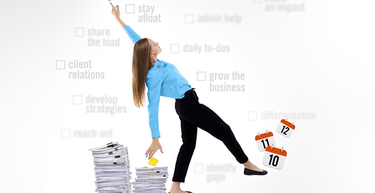Yvonne Lyngaas Zeman, owner and CEO of Chicago, Illinois-based Monarch & Company, says the time and labor commitment she applies to managing administrative tasks has more to do with the end game than a daily checklist. “I can only speak for myself, but the commitment to business is all day long until I consciously shut it off. I don’t know if it’s this way for everyone—and I think you can be successful in your own right by putting in as much or as little time as you want. It’s all about what you are going after,” Zeman says.