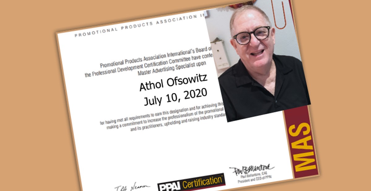 Ofsowitz earned his certifications when PPAI was waiving fees for education sessions and certifications from April to June, in response to the coronavirus pandemic, and to help industry members take advantage of the Association’s educational offerings. During this time, there were a record 1,106 certifications, recertifications and lifetime certifications awarded.