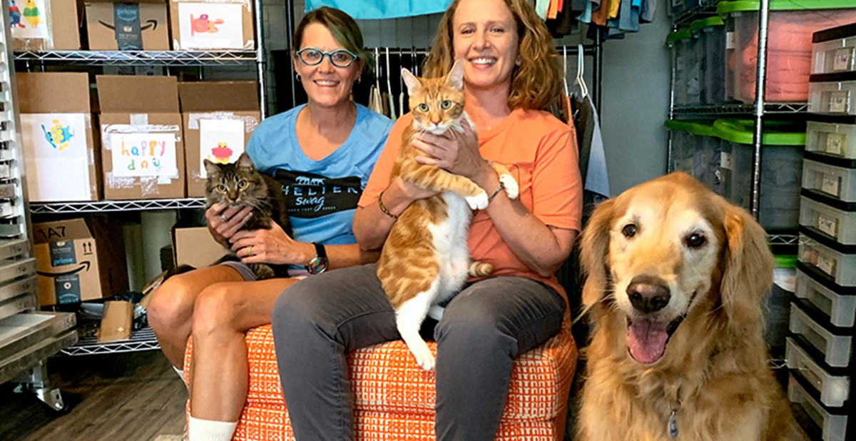 Sharie Lesniak, above left, and Linda Bak share the same vision: to help as many animals as possible. Having both volunteered and worked for different animal welfare efforts, which is also how they first crossed paths, the pair has an acute awareness of these groups’ specific needs and challenges. In search of something more meaningful from their careers at the time—Lesniak worked in advertising and Bak was a strategy consultant and securities broker—they used their combined expertise and passion for animals and founded Shelter Swag, a St. Petersburg, Florida-based distributorship with a mission to help animal nonprofits promote themselves. Their motto, "We Put The 'Wag' In Swag," says it all.