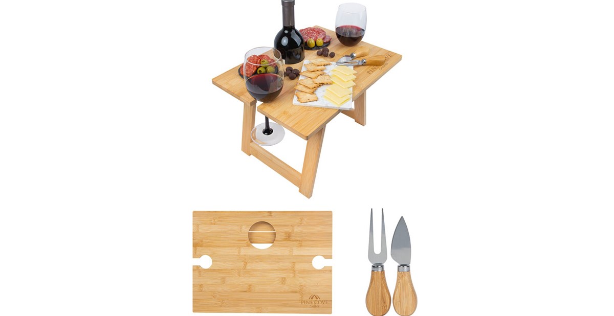 Product idea: The Everett Wine & Cheese Table brings comfort and style to outdoor picnic parties or evenings in bed. It comes with a bamboo-handled steel cheese fork-and-knife set. It can hold all your charcuterie choices, including cheese, nuts and olives. The tabletop includes cutouts to hold two wine glasses and a bottle. The 10-inch picnic table is made of environmentally friendly natural bamboo, and its collapsible design saves space for transport and storage.