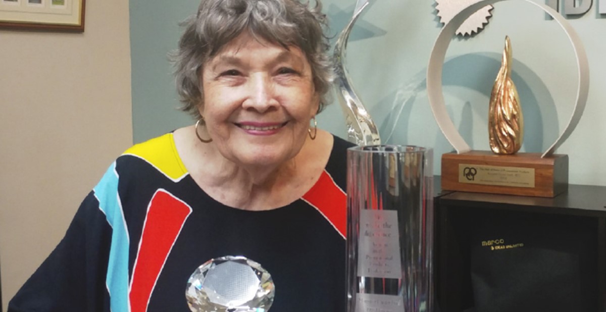 Above photo: Margaret Custer Ford, MAS, with some of the many awards she's won since starting MARCO Ideas Unlimited 60 years ago.