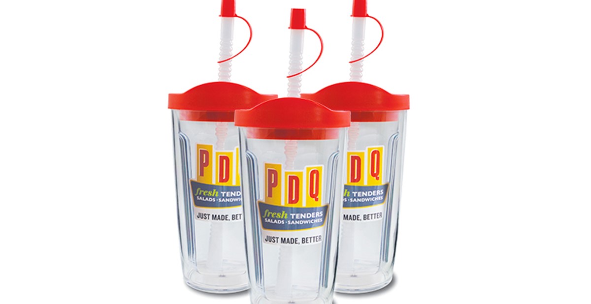 HOWW Line’s thermal pieces feature a four-color process, contoured-cut decal insert. After the art is approved, the decal is printed in house and laser cut, then stripped from the print sheet and applied to the inner sleeve of the glass. The cup is then sonically welded and packed out.