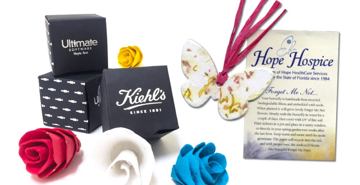 She initially sought a gift for her daughter, but quickly noticed that many products at the show were made of plastic or were manufactured overseas. It was then Felson landed on an idea—to offer USA-made, easy-on-the-earth products. A year later, she joined her husband at the show again, adding the zippered coconuts to his booth. She sold 100,000 in her first year, with one of her clients including CBS’s Survivor reality series. It was shortly after that she founded Symphony Seed Papers, Inc., a manufacturer of 100 percent recycled, recyclable and biodegradable paper embedded with flower, vegetable, herb or tree seeds. When gifted, recipients can simply soak the paper in water, cover with a fine layer of soil and watch it grow into a beautiful plant in two to four weeks. The popularity was evident—her first order was for 10,000 seed cards.
