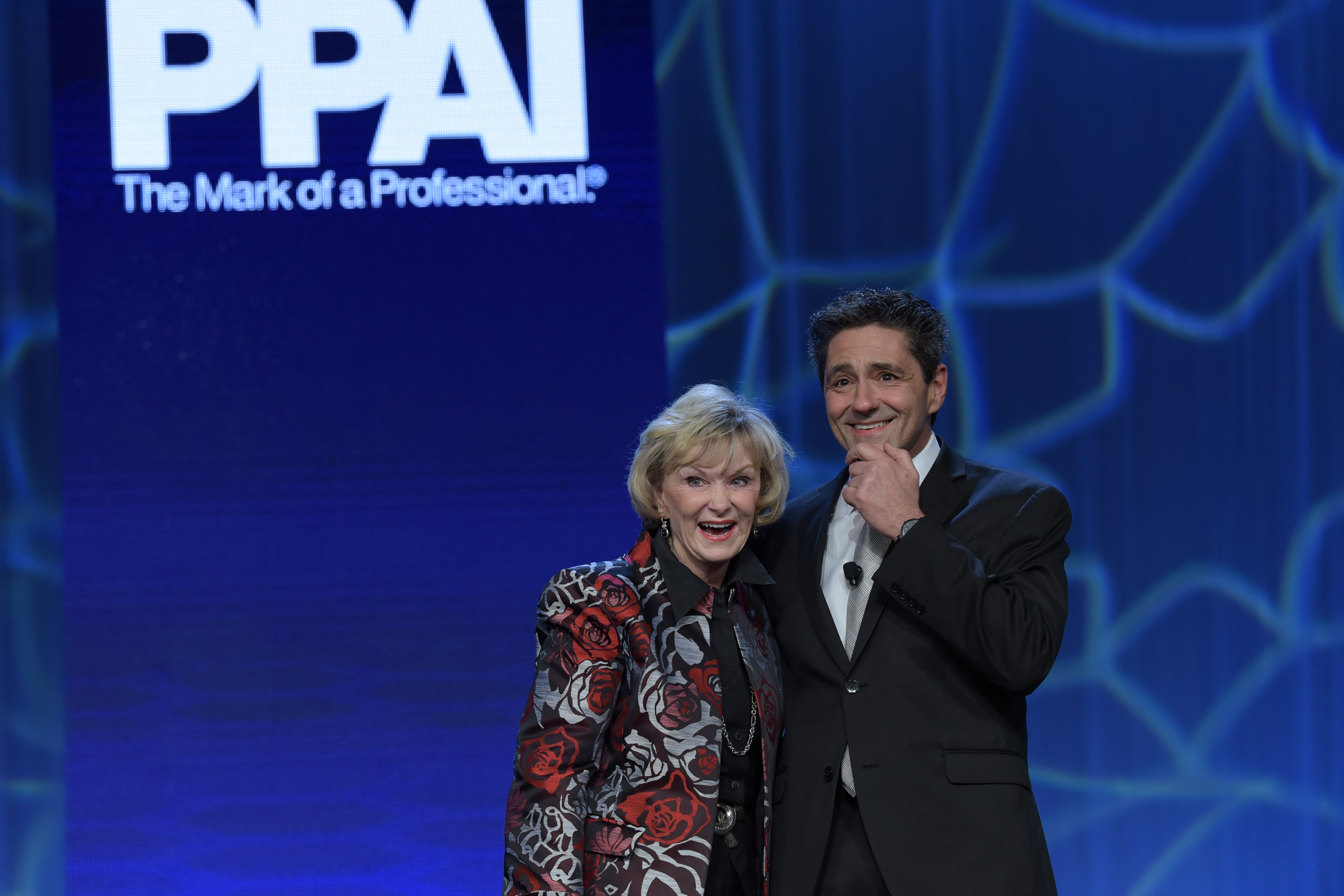 PPAI hosted an elegant black-tie dinner early in the week with nearly 200 in attendance, including current and past board members, volunteer leaders and industry legends who came to pay tribute to this year’s honorees. In the spotlight were two 2018 inductees into PPAI’s Hall of Fame: the late Janelle Nevins, formerly senior vice president at Silver Spring, Maryland-based distributor Summit Group, and David Woods, MAS, retired president and CEO of Neenah, Wisconsin, distributor AIA Corporation. The event also honored two other volunteers, Charles Duggan II, MAS+, national and strategic key accounts manager at Goldstar, and William “Bill” Lazarus, MAS, owner and vice president of Promotional Breezes, with the PPAI Distinguished Service Award for their selfless dedication and volunteerism to PPAI and the industry. In addition to the four award winners, PPAI also recognized three individuals in its annual Promotional Products Pioneers tribute for their vision, drive, innovation, character and leadership in the industry: Marty Lott, owner and president of SanMar; the late Bill Schmidt, former owner and president of Hit Promotional Products; and S. Allen Dohan, CEO of The Allen Company.