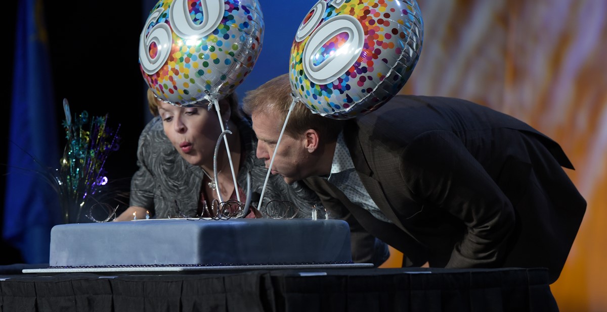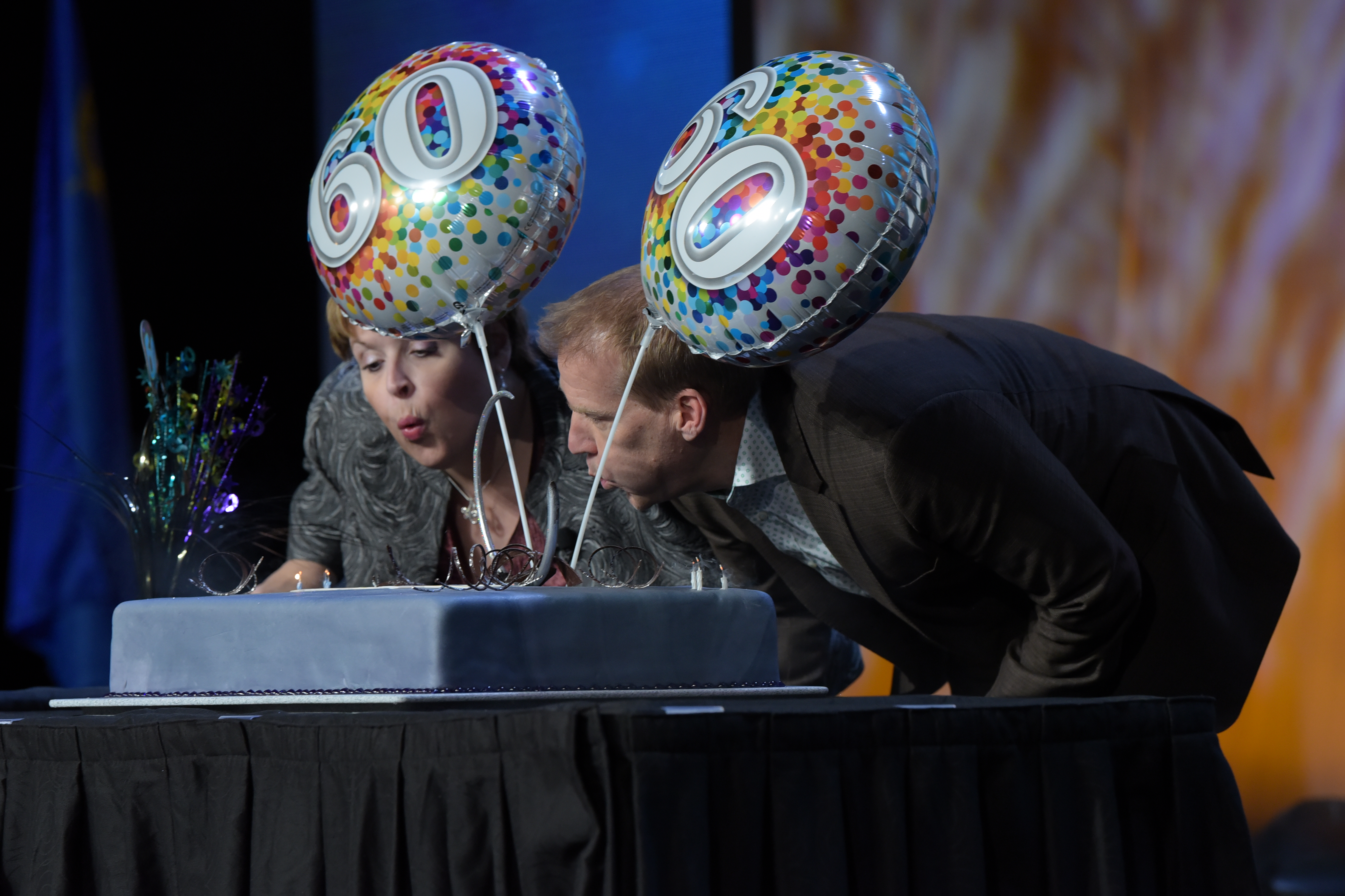 Above: PPAI 2017 Board Chair Mary Jo Tomasini, MAS+, passes the gavel to incoming Chair Dale Denham, MAS+, during the Volunteer Recognition Luncheon.