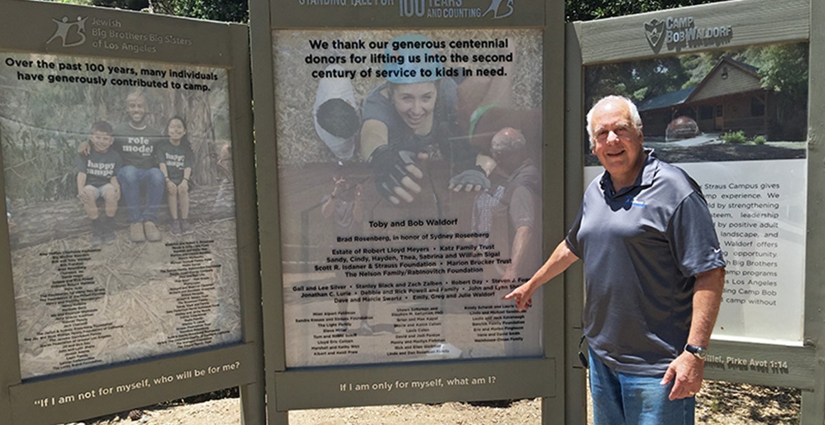 Waldorf generously contributes his time to his community. In addition to Camp Bob Waldorf, he’s a 60-plus-year volunteer with Jewish Big Brothers and Big Sisters of Los Angeles, which runs a mentoring program, offers college guidance and scholarships, and runs the camp. He has served the organization in many capacities over the years, including as board chair in 1994-1997, and was honored with its Lifetime Achievement Award in 1999, its Legacy Star award in 2008 and as its Legacy Award recipient in 2015.