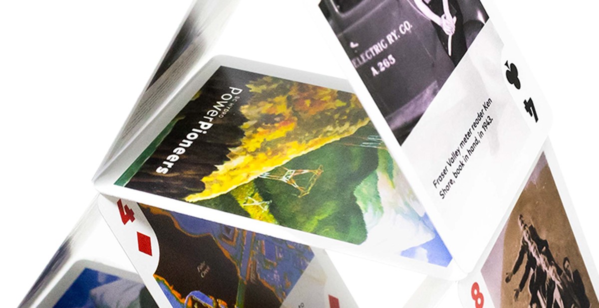 Vancouver-based Martket Branding (PPAI 694352, D2) designed and produced custom playing cards for the BC Hydro Power Pioneers, a nonprofit group representing more than 5,000 retirees of the electric utility company for the province of British Columbia in western Canada.