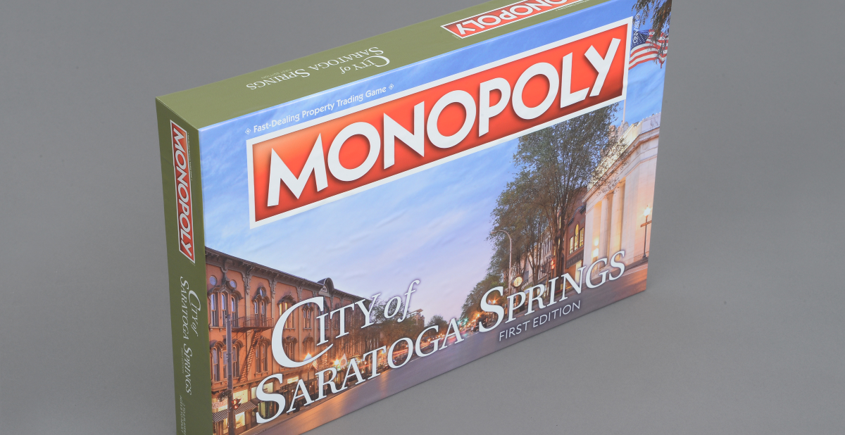 A Cooley Group brand consultant worked with local companies and organizations to arrange sponsorships of game tokens and board properties, selling naming rights of individual properties and converting the coveted “Boardwalk” space into the iconic Saratoga Race Course.