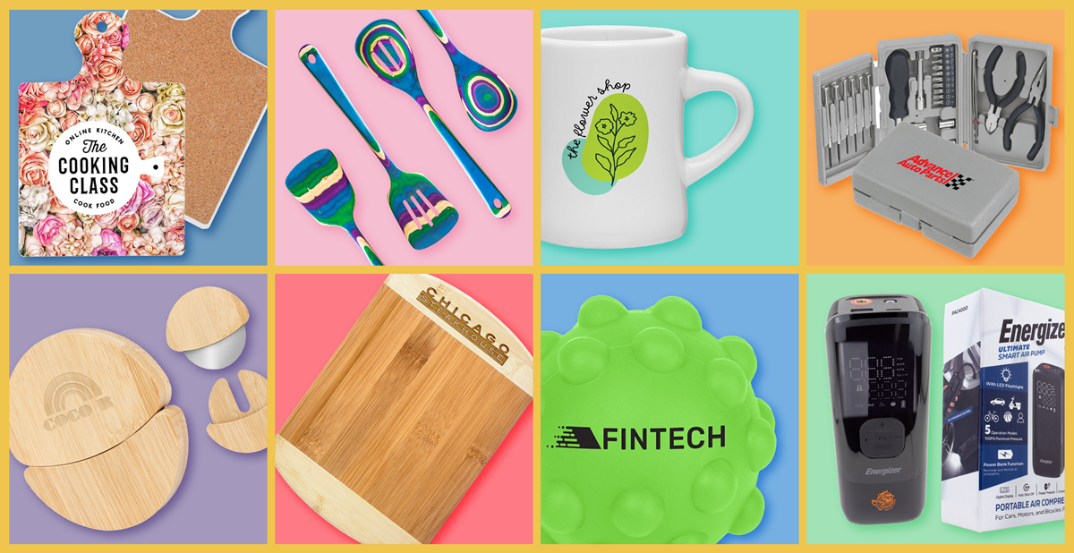 “People never throw them away – cutting boards, spoons, pizza cutter, trivets, etc.,” she says. “People will keep them even if they have those items at home already. It keeps your brand in front of them for years. I have picked up similar items at trade shows and still use them.”