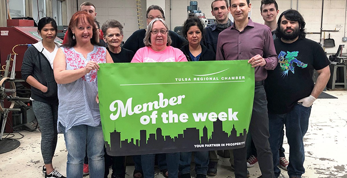 Top: Mark Abels, front row, second from right, and Selco employees share in the company's recognition as Member of the Week by the Tulsa Regional Chamber.