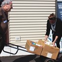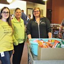 Volunteers were split into two groups to unload the truck, unbox goods, keep the tables of food stocked, assist shoppers and load groceries into their cars.