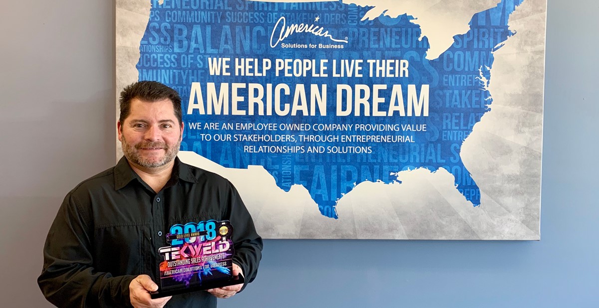 Distributor American Solutions for Business (PPAI 101656) was recently presented with the Gold Level Award for outstanding sales achievements from supplier Tekweld (PPAI 266346). The awards are given to accounts for outstanding achievement in sales and the level is based on volume. A limited number of accounts out of thousands achieved this particular sales award.