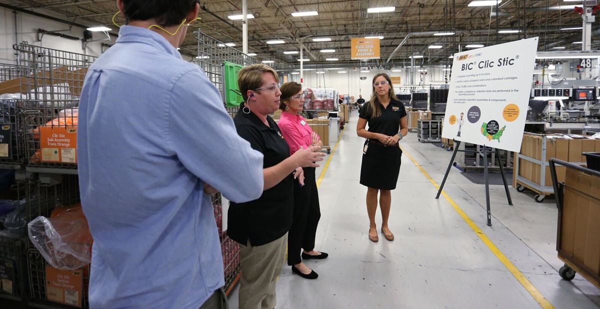 The media members were treated to guided tours of BIC’s two manufacturing facilities, including a look at its proprietary robot automation and flex machines. The tours were led by employees in their work sites, rather than management, so that those who perform each function were able to demonstrate their areas of expertise and pride in their craft. The tours also included a look at customer relations and training, with an in-depth view at how each function supports the company vision.