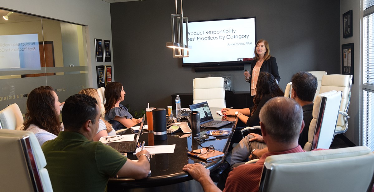 Anne Stone, PPAI’s director of public affairs, presented a product responsibility training session for employees at Garland, Texas-based distributor Bob Lilly Promotions today. Her session covered the Consumer Product Safety Information Act, regulations for each of the top 10 product categories, and the recent changes to California Proposition 65—the new warning requirements for the latter go into effect on August 30. The changes affect all products that are made after that date and contain any of the 900-plus chemicals that are on the Office of Environmental Health Hazard Assessment list as being known to cause cancer, birth defects or other reproductive harm.