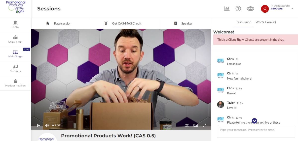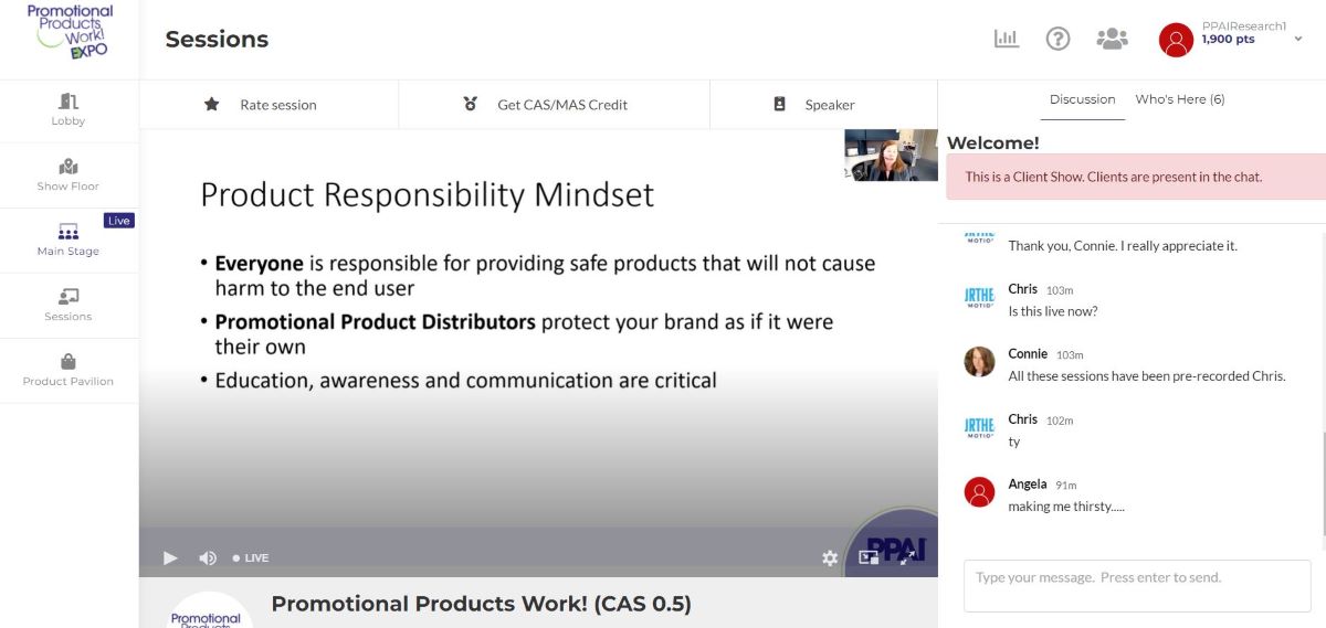 “That is amazing,” Davis, who currently sits on the PPAI Board of Directors, says. She also says she was impressed with the functionality of the event, which is hosted on SAGE’s virtual event platform.