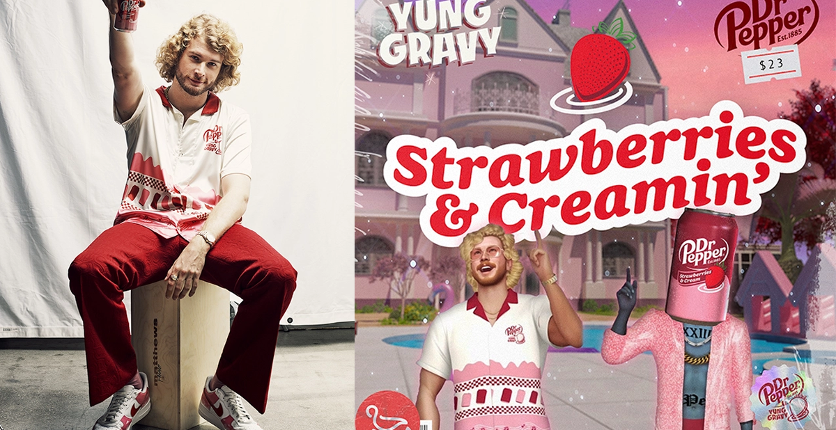 To celebrate the release of its latest flavor, Dr Pepper Strawberries & Cream, the soft drink company engaged rapper Yung Gravy to create a song, video and exclusive merch collection.