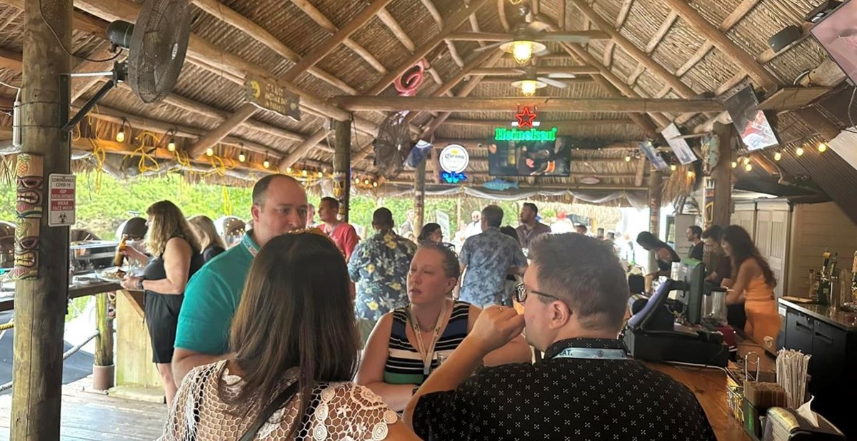 Check-in was at a pool bar at a Fort Lauderdale hotel, where attendees could casually meet and hang out ahead of that night’s welcome dinner and open bar at a tiki restaurant. It would be their last on land for the next four days.