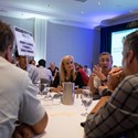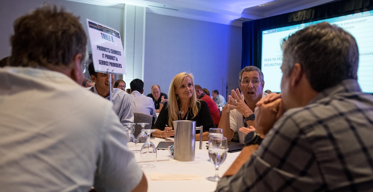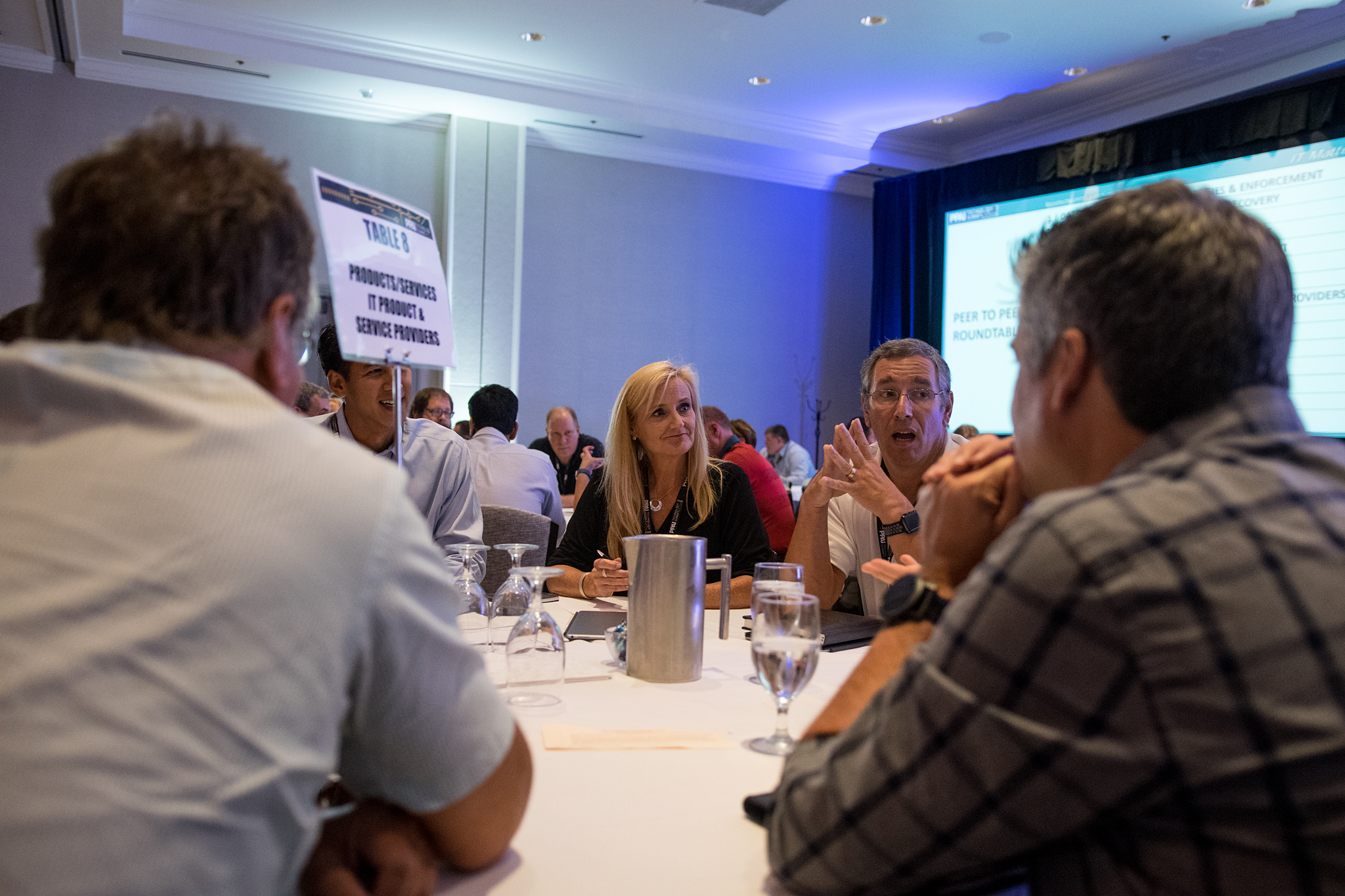 Following lunch, attendees broke into 15 groups to take part in peer-to-peer roundtables. Each table was marked with a separate subject, ranging from archival strategies and enforcement in data management, to project and time management in development, to cloud migration and the lessons learned during the process. Participants reshuffled at the midpoint of the hour-long session, joining different groups to discuss new topics.