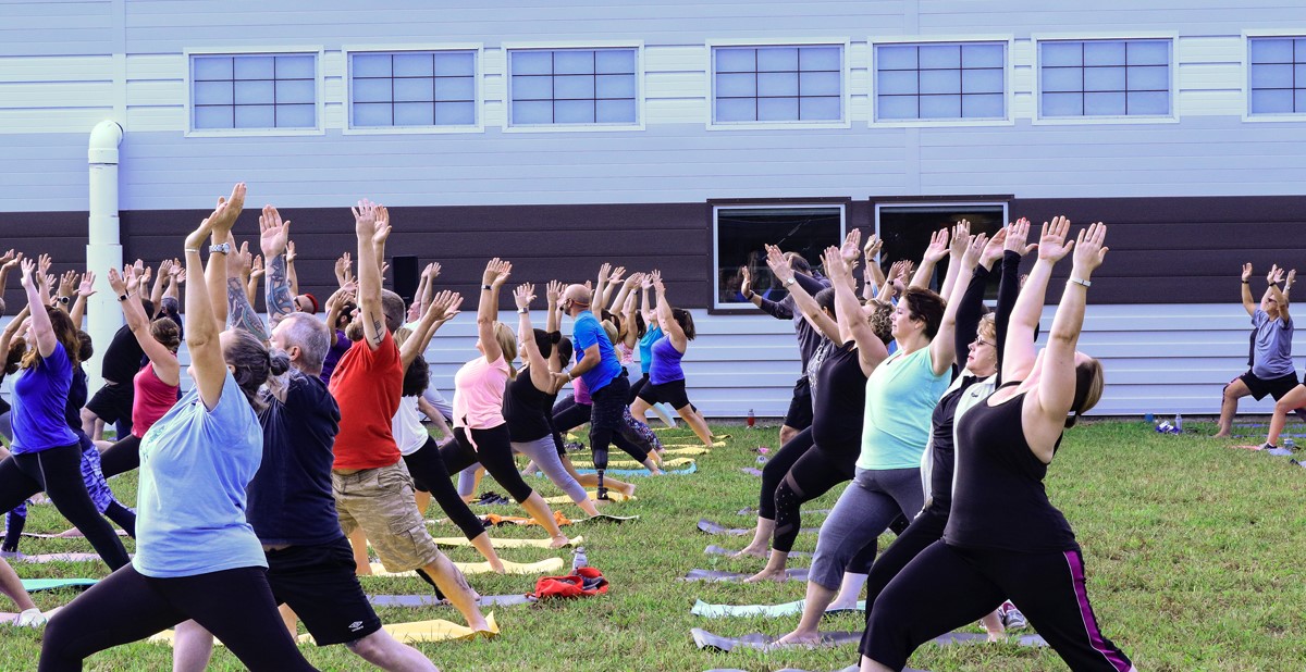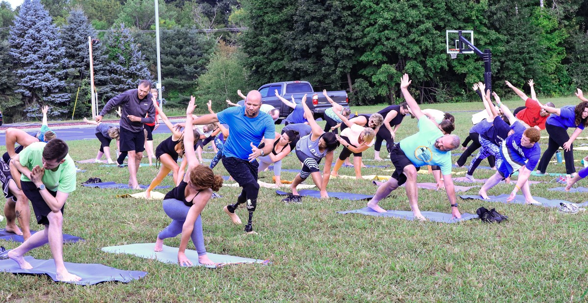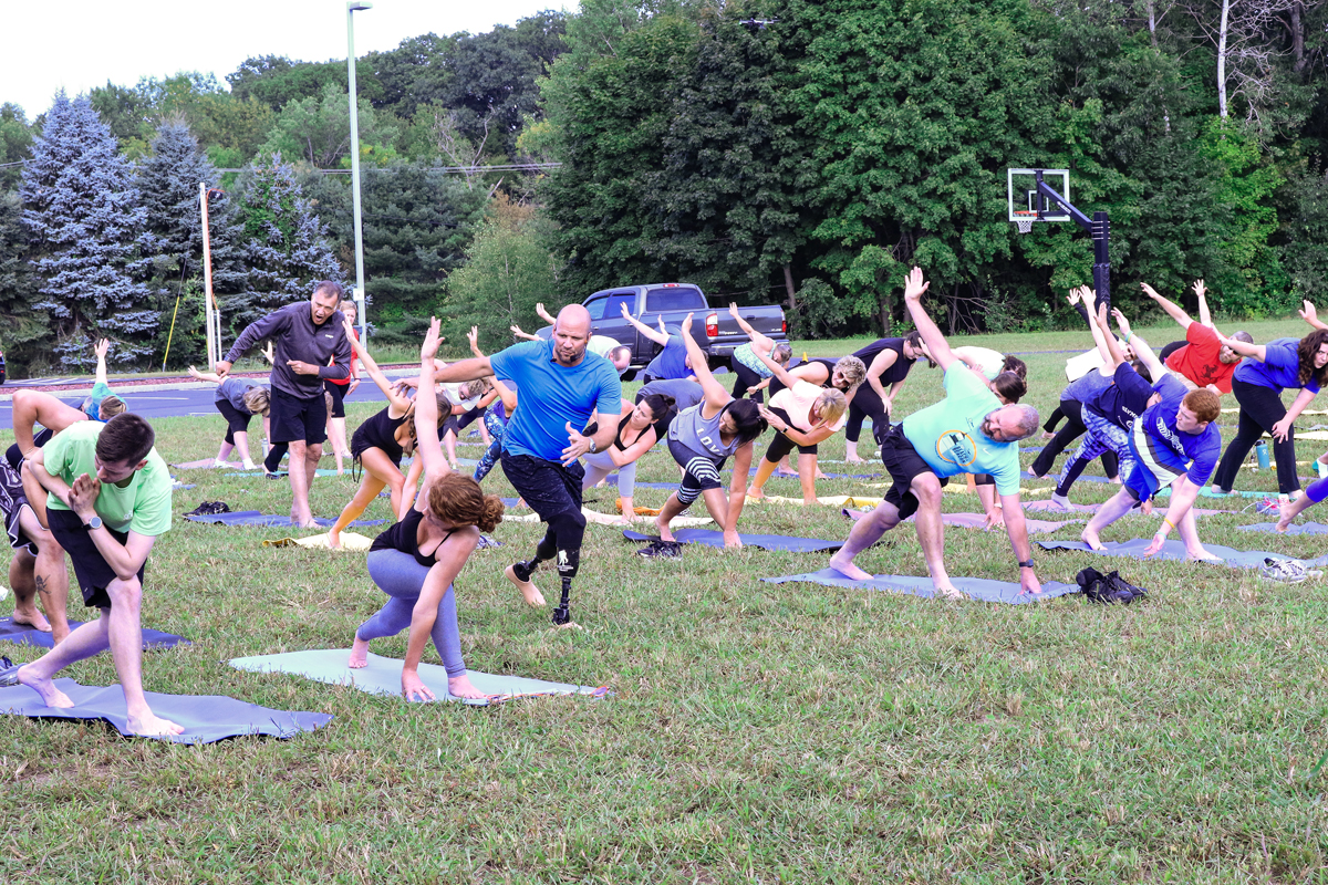 Nevins is a highly decorated veteran who lost both legs below the knee from an IED detonating below the vehicle he was riding in. He shared his transformational story with Geiger’s 400-plus associates in person and via live telecast. The day concluded with Geiger staff participating in the record-breaking yoga session.