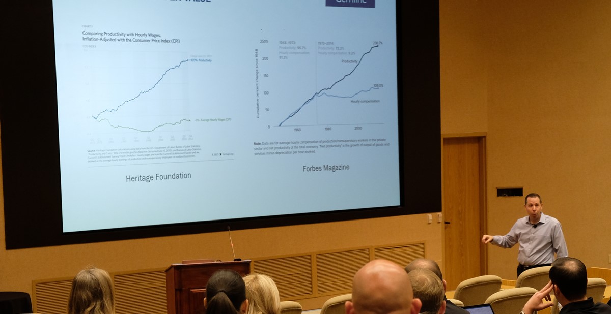 Starting in the 1990s, Isaacson said, inequality became more prominent. The costs of health care and housing started rising, and there was a race-to-the-top mentality. The Ivy League, he said, became akin to a sports league, with everyone competing against each other for the position of top player with the most value. He described the Gini coefficient, which is a measure of the extent of inequality of values, usually personal income. When the Gini coefficient is zero, he said, there is perfect equality in terms of income distribution, but when the coefficient is one, then one person or entity maintains all power and there is total inequality. (The Gini coefficient of the U.S. is 0.49.) The division of wealth, in large part, is the fuel that ignites many of these worldwide changes.