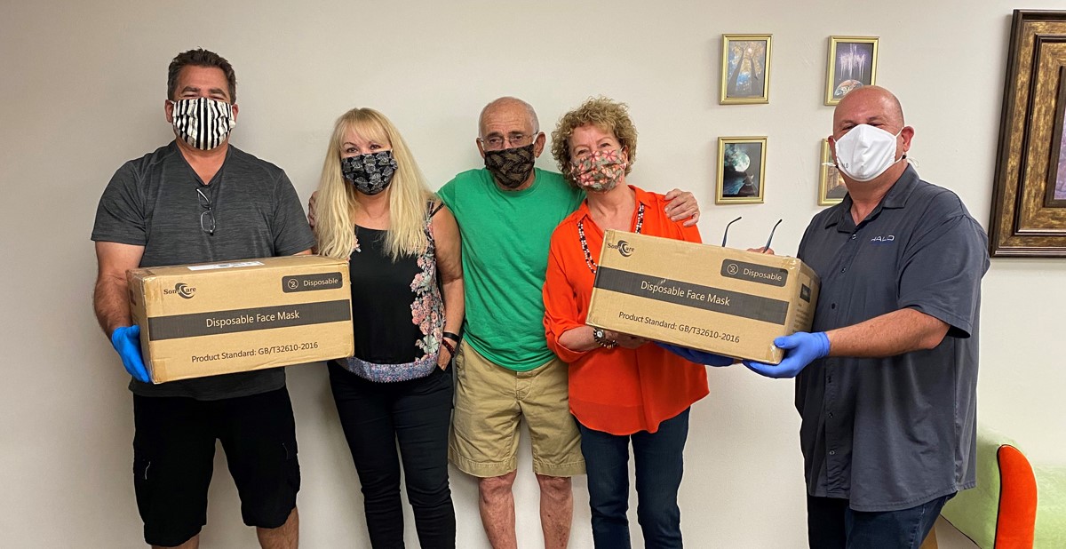 Members of the sales and management team of Sterling, Illinois-headquartered distributor HALO Branded Solutions (PPAI 106462, D15) donated 2,000 three-ply disposable face masks to the New Friends Homeless Center in Woodland Hills, California.
