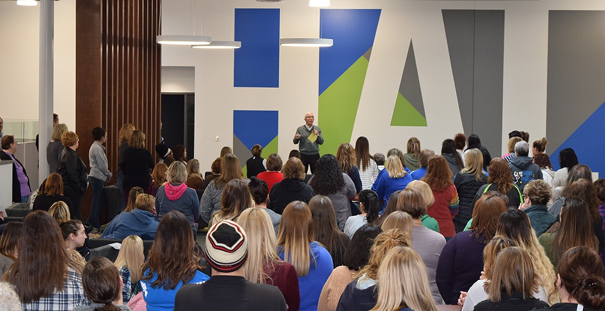 Above: HALO Branded Solutions employees celebrate the company's new headquarters in Sterling, Illinois.