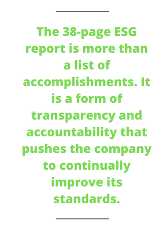 The 38-page ESG report is more than just a list of accomplishments. It is also a form of transparency and accountability that will push the company to continually improve its standards.