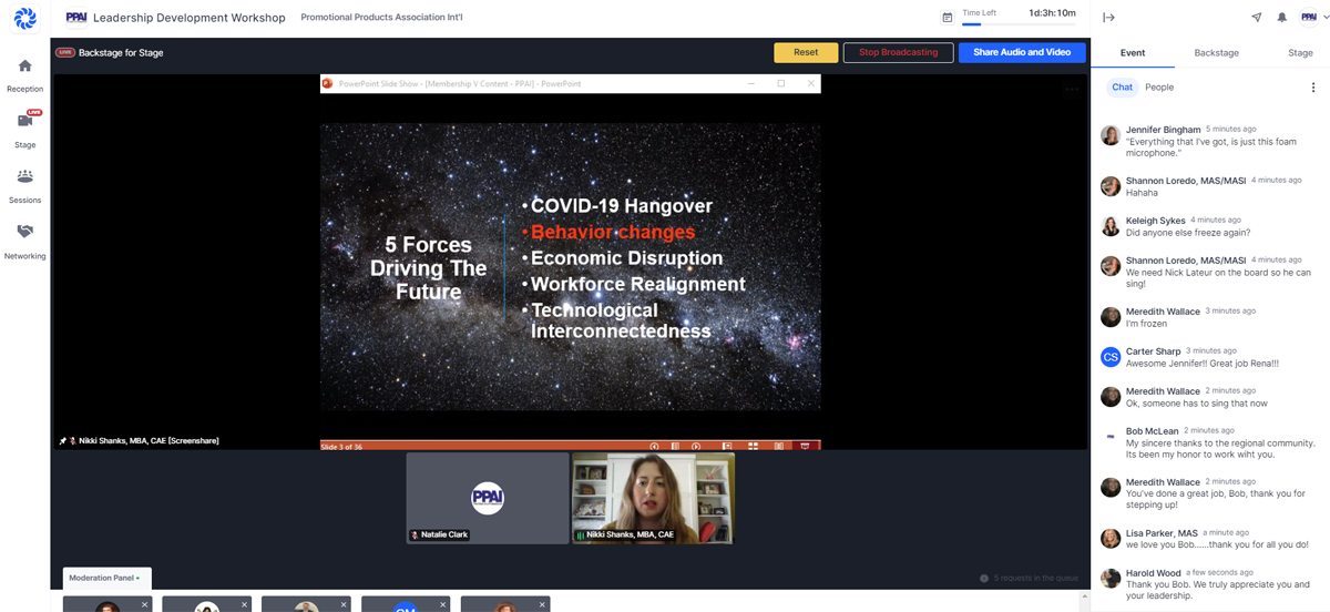 On opening day, July 21, LDW sessions ran from 1:30 – 4 pm CT, before ending with a virtual karaoke networking event. After the workshop’s opening remarks, Ashfeld joined PPAI Interim President Bob McLean, CAE, for a “fireside chat”—Ashfeld noted that she’d lit a candle on her desk to keep the session title legit—that examined the state of the Association and the industry, what the trade show landscape looks like now and what can be expected for the in-person PPAI Expo 2022.