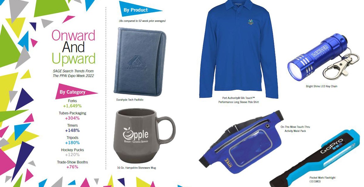 SAGE and PPAI Media also identified some of the particular products with the highest relative search gains compared to the previous 52 weeks.