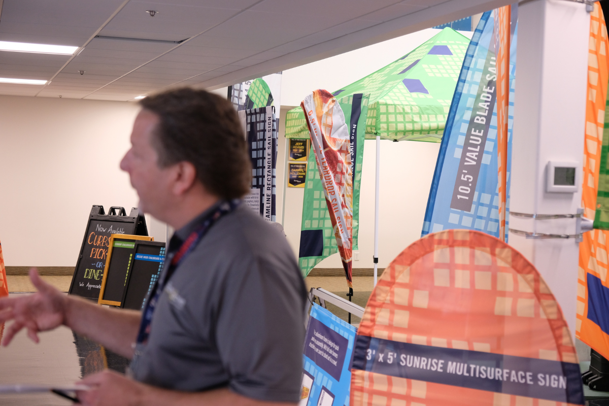 Visitors saw the company's unique processes and printing capabilities, and got to ask questions to leaders including CEO John Bruellman and president and PPAI board chair Kevin Walsh, CAS. Later, the team even had the opportunity to pose for photos with "Dash," Showdown's ninja mascot.