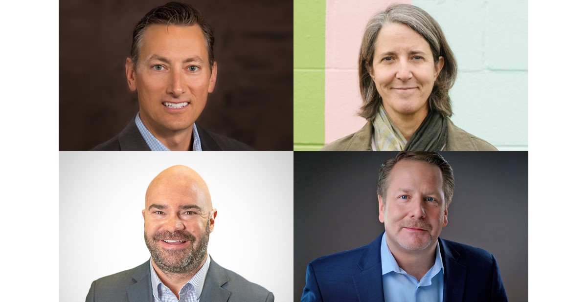 PPAI's 2024 Board Officers are Andrew Spellman, CAS, board chair (top left); Denise Taschereau, incoming chair (top right); Chris Anderson, vice chair, financial services (bottom left); and Kevin Walsh, CAS, immediate past chair.