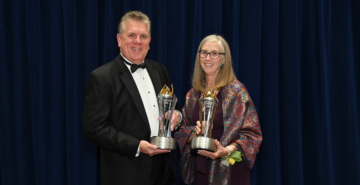 Monday evening, during the Chair’s Leadership Dinner at The PPAI Expo in Las Vegas, PPAI awarded its highest honor, induction into the Hall of Fame, to Sherri C. Lennarson, MAS, retired senior vice president of business development at Bankers Advertising Company and Cliff Quicksell, MAS+, president of Cliff Quicksell Associates.