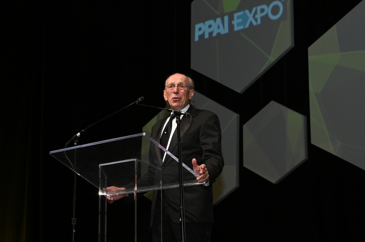 Eric Ekstrand, MAS, regional VP at HALO and Mackay’s nominator, introduced Mackay, noting his extensive volunteer commitment as a former member of PPAI’s board of directors and his service on numerous committees including the Terminology, Technology and Standards Committee and the Suppliers Committee, among many other activities.