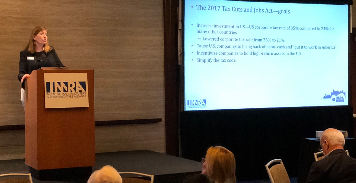 In her presentation, Stone explained the odyssey of section 274(j) in the tax code during the tax reform process. Section 274(j), first enacted in 1986, provides favorable tax treatment for qualifying awards and recognition programs. In the first, House-passed version of the tax bill, 274(j) was eliminated. It was retained in the Senate’s version. The reconciled version of the tax bill, which President Trump signed into law, also retained 274(j). Stone credits its preservation to targeted lobbying by the Incentive Federation, an umbrella organization for the incentive field. PPAI is a member of the Incentive Marketing Association, one of the organizations under the Federation umbrella.