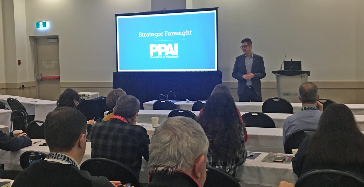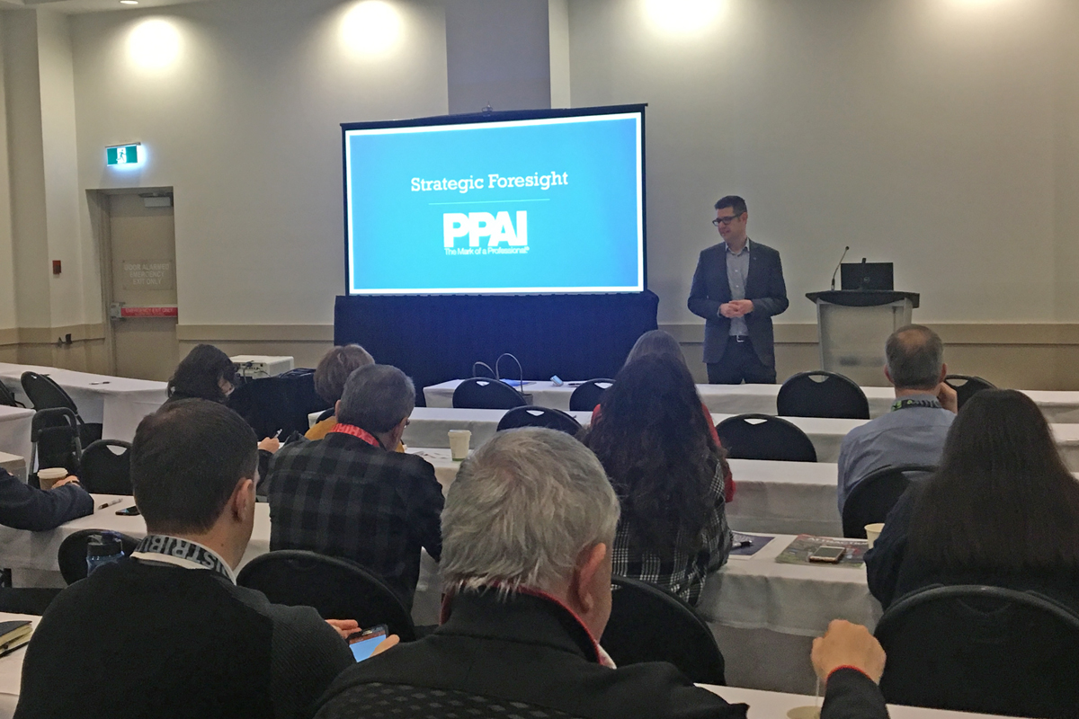 Paul Bellantone, CAE, PPAI® president and CEO, and Anne Stone, PPAI director of public affairs, joined the Toronto show to speak on strategic foresight for the industry. Their presentation catered both to the needs of small businesses looking to grow beyond their current set of customers and to larger organizations faced with ever-increasing demands for growth. The session also introduced PPAI's Strategic Foresight Playbook and discussed its real-world applications in an uncertain world.