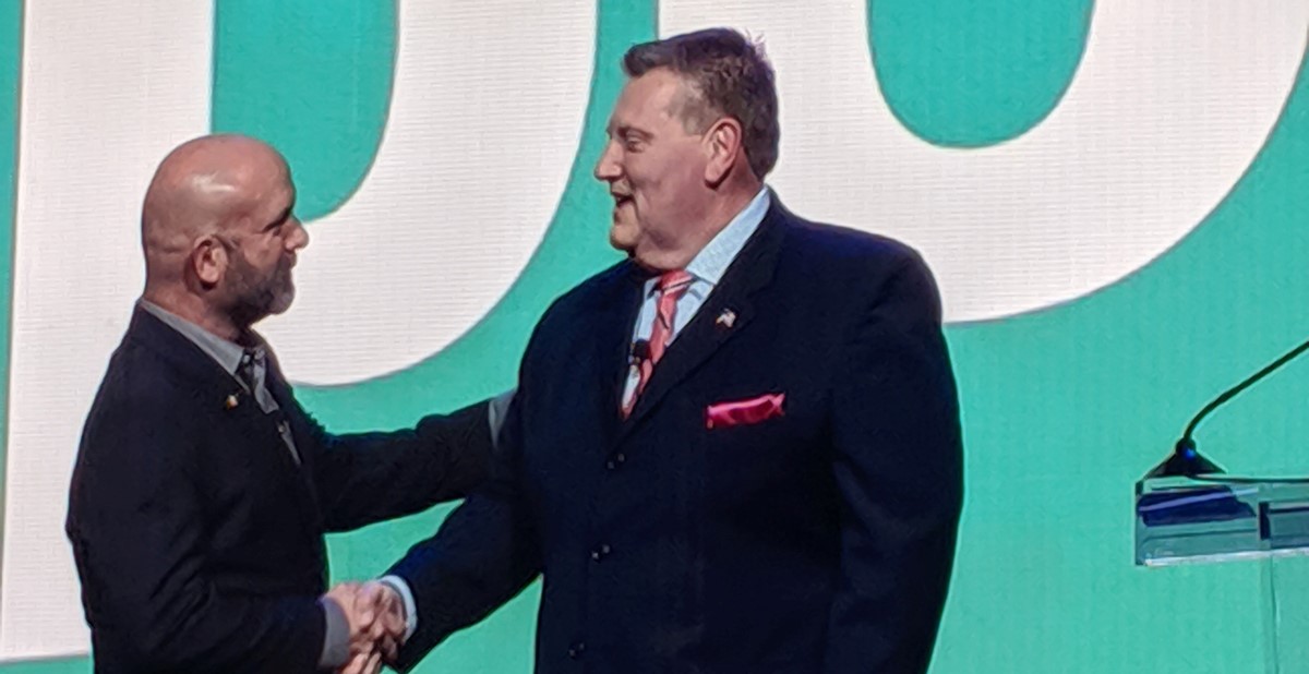The International Association of Exhibitions and Events (IAEE) today announced at its annual IAEE Expo! Expo! event in Las Vegas, Nevada, that PPAI Executive Vice President Robert “Bob” McLean, Jr., CPA, CAE, CEM, has assumed the role of board chair for a one-year term. McLean (pictured, right) accepted the gavel from outgoing Chairperson Tom Cindric, Jr., CEM.McLean is also featured on the cover of this month’s IAEE special edition of Trade Show Executive in an extensive interview and on the TSE Talks podcast with host and TSE Editor-at-Large Danica Tormohlen.