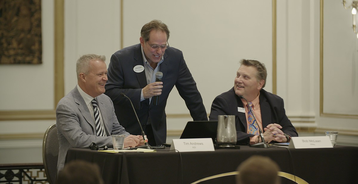 PPAI Executive Vice President Bob McLean, CPA, CAE, joined in a panel discussion at distributor iPROMOTEu’s (PPAI 218870) recent Affiliate Forum in Boston, Massachusetts. Ross Silverstein, president and CEO of iPROMOTEu led the discussion that included McLean and Tim Andrews, president and CEO of ASI, who talked about key trends facing the promotional products industry and how PPAI and ASI see them developing.