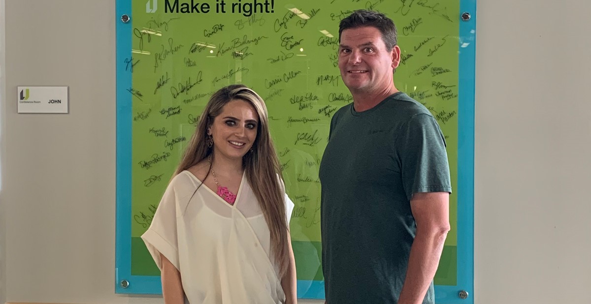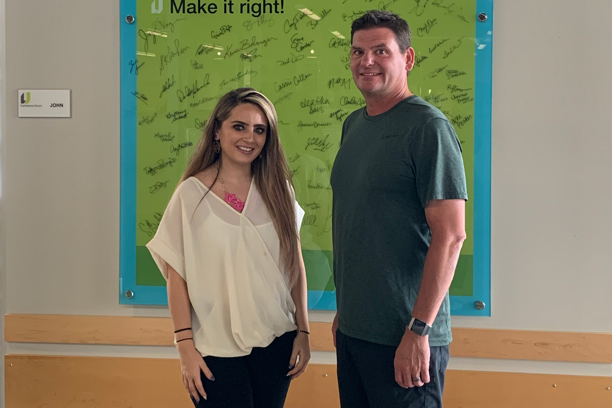 At Links Unlimited, Renda met with Sherry Barry, marketing manager, and Scott Kooken, president and co-founder, who shared how the company got its start. Kooken (pictured above, with Renda) started the company with co-founder Bret Williams with a vision to sell logoed golf clubs. The team launched their business out of their apartment—Kooken sold his mountain bike for a computer—and for the next four years, they bootstrapped their efforts. Kooken and Williams both worked full time outside of their business, Kooken working days and Williams working nights. When they finished their first workday, the pair would switch off and focus on growing their business. Today, the company prides itself on developing partnerships with its clients, says Kooken, with a full product line and 70 employees, in addition to a range of high-quality, elevated products. The turnkey company also manages incentive events for some of its clients.