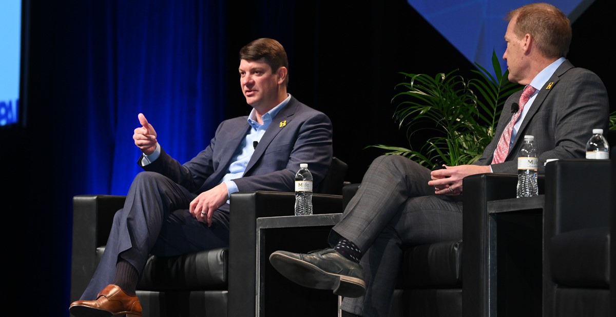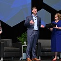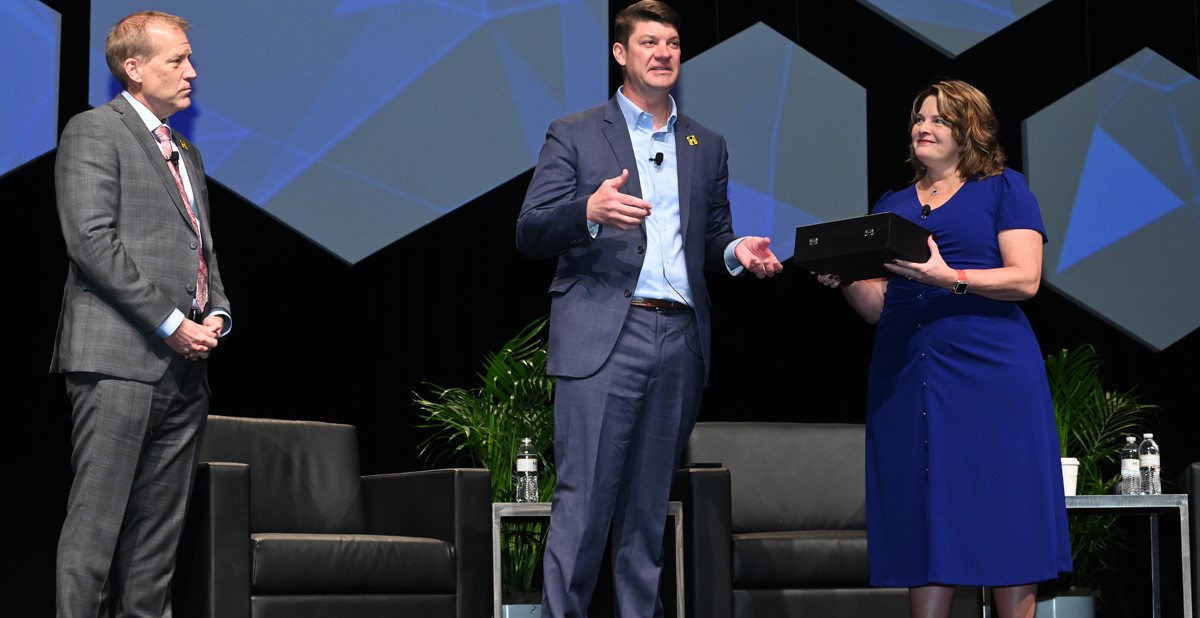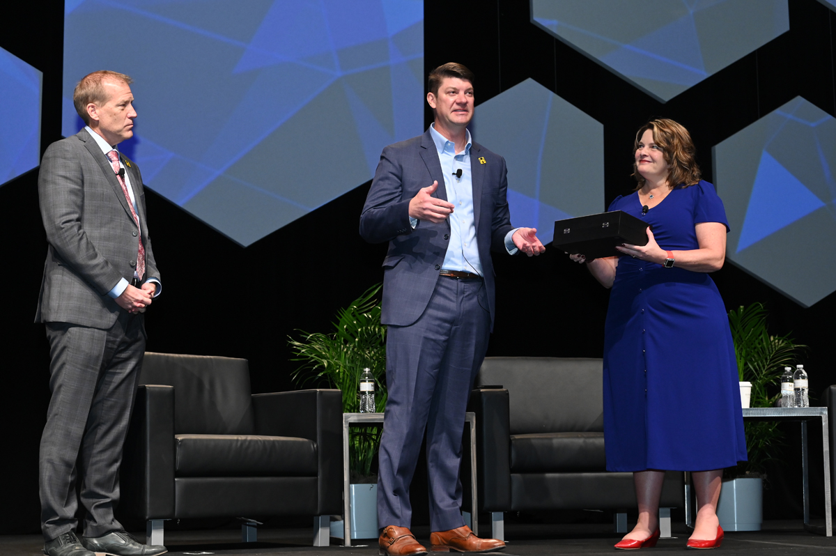 During the Association Update, outgoing PPAI Board Chair Todd Pottebaum, MAS, took a ceremonial step to transitioning his position to Dawn Olds, MAS, through the traditional passing of the gavel. Olds, who was elected to Board Chair in June, will assume the seat at the conclusion of The PPAI Expo on Thursday.