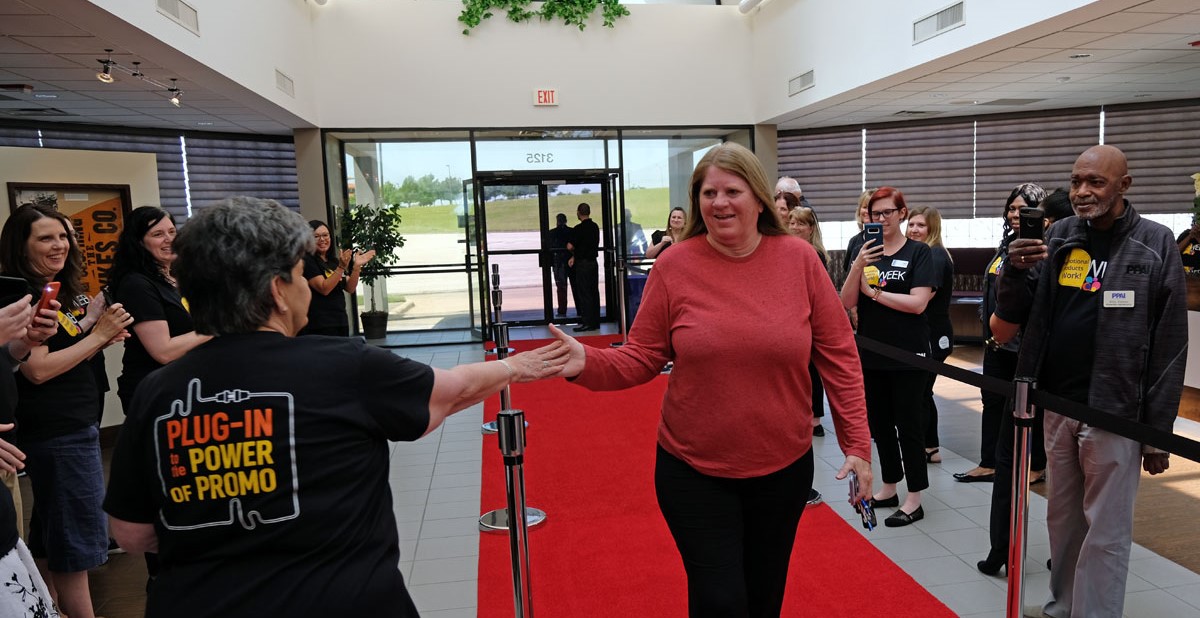 On Monday, Tuesday, Wednesday and Friday of PPW!W, PPAI is hosting local members of the Association at its Irving, Texas, headquarters. Complete with a red carpet, guests are joining PPAI for lunch and to learn more about the Association and the industry’s effectiveness (pictured above). Several are also joining PPAI in a series of videos for Facebook, sharing their experiences in the industry and their perspectives on the power of promotional products.