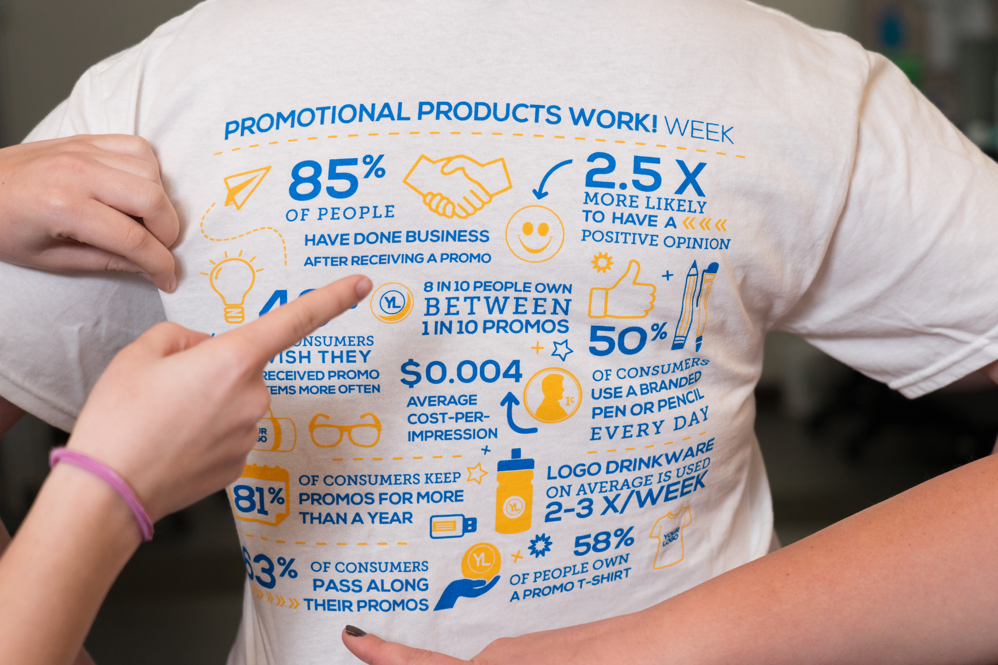 Promotional Products Work! Week is an annual industrywide event dedicated to celebrating the power of promotional products and the value they create. It serves as a cornerstone for recognizing the importance of working with promotional professionals, while creating awareness for promotional products as a powerful and effective advertising and marketing medium. In addition to contributing $23.3 billion to the U.S. economy, the promotional products industry is comprised of more than 40,500 companies employing more than 500,000 professionals. Learn more about participating in Promotional Products Work! Week here.
