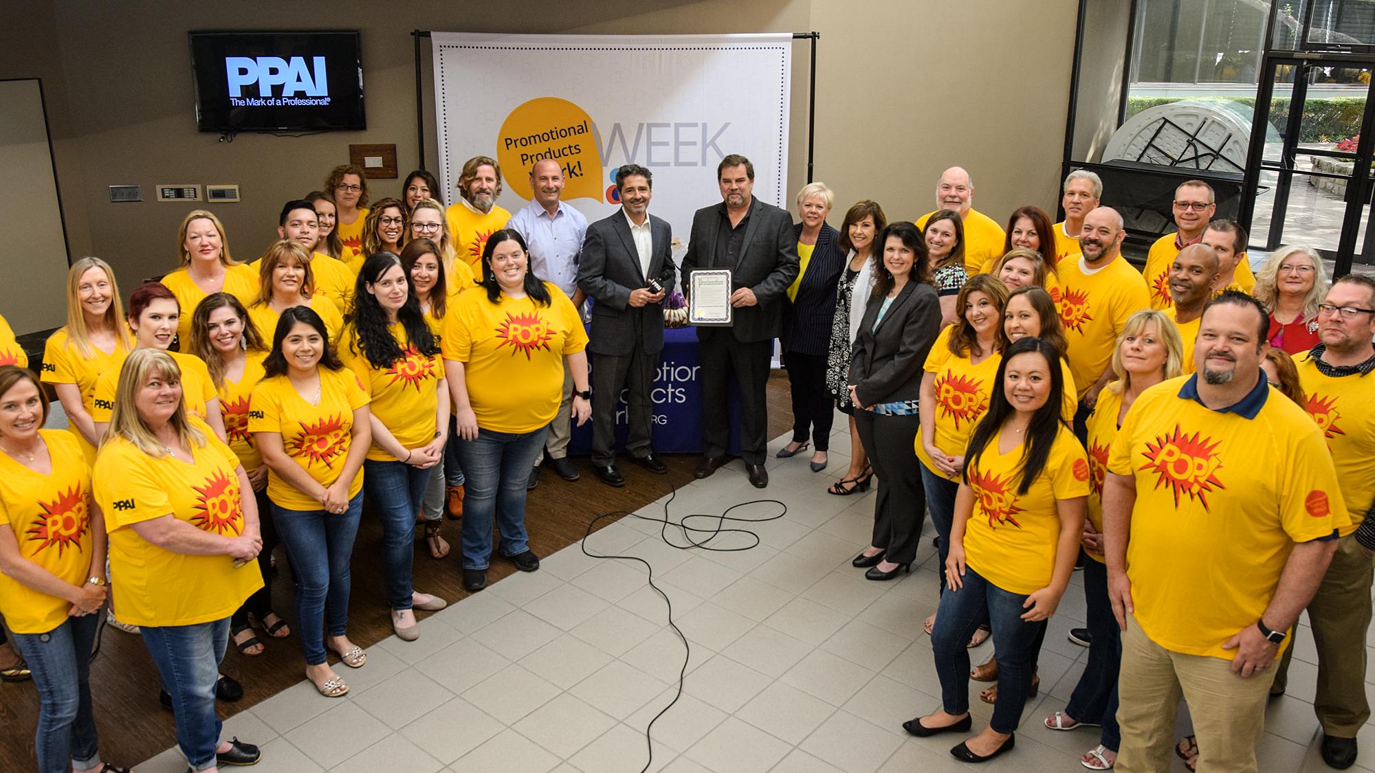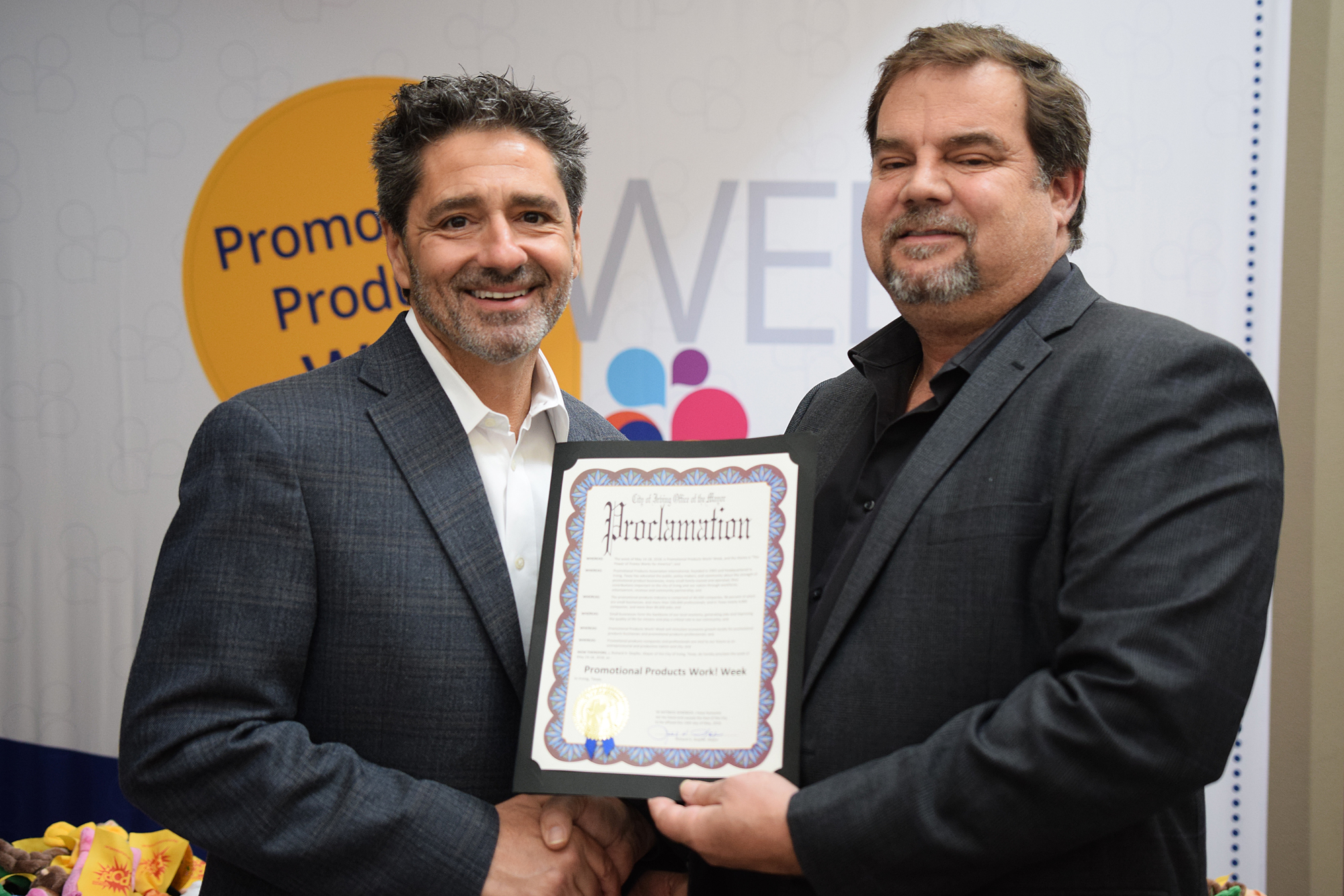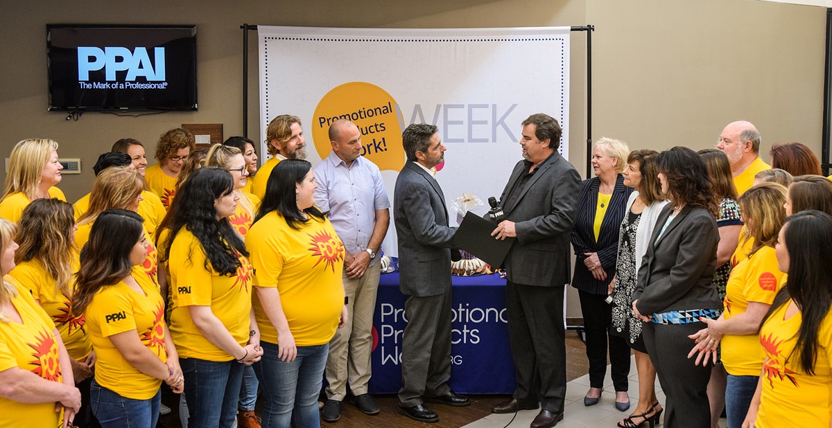 PPW! Week got off to an exciting start on Monday when Irving, Texas, Mayor Pro Tem Allan Meagher, on behalf of Mayor Rick Stopfer, visited PPAI headquarters to declare Promotional Products Work! Week for the city. Irving has been the home of PPAI for almost 40 years. Joined by PPAI President and CEO Paul Bellantone, CAE, and the Association’s staff, Meagher said, “Small businesses are the backbone of our local economy, generating jobs and improving the quality of life for citizens and play a critical role in our community; and Promotional Products Work! Week will stimulate economic growth locally for promotional products businesses and promotional products professionals. Promotional products companies and professionals are vital to our future as an entrepreneurial and productive nation and city.”