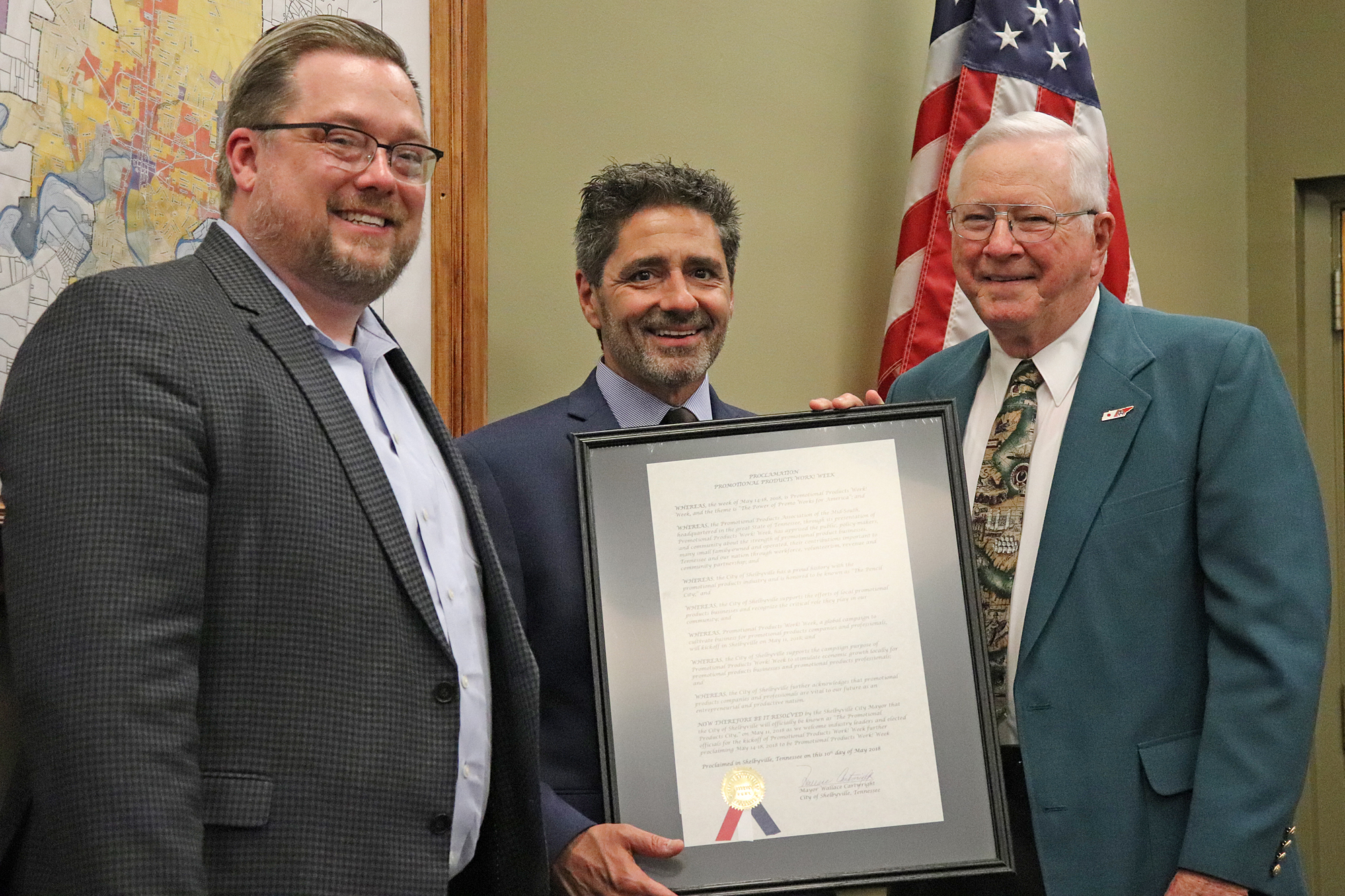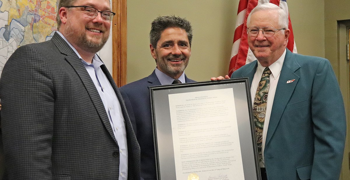 Irving’s city leadership is not the only local government to recognize the importance of promotional products businesses and professionals within their community. As reported last week in a PPB Newslink Breaking News alert, on Friday Shelbyville Mayor Wallace Cartwright and the state of Tennessee issued proclamations recognizing this week as Promotional Products Work! Week. The city of Shelbyville, also known as The Pencil City, declared itself The Promotional Products City to acknowledge the contributions of promotional products companies and professionals to the economy and local communities.