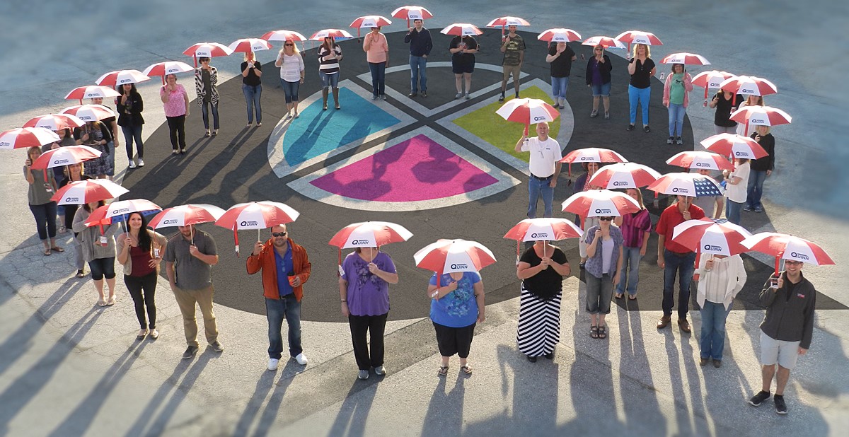 Celebrating Customer Service Week, Quinn Flags & Banners (PPAI 360359) gave all employees at the Hanover, Pennsylvania, supplier an American flag umbrella with the supplier’s new logo.