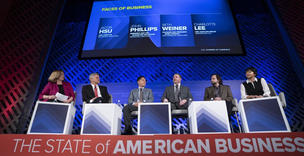 Seth Weiner, president of Gaithersburg, Maryland, distributor Sonic Promos (PPAI 288270, D3), was featured on a panel of small-business owners from across the U.S. as part of the U.S. Chamber of Commerce State of American Business.