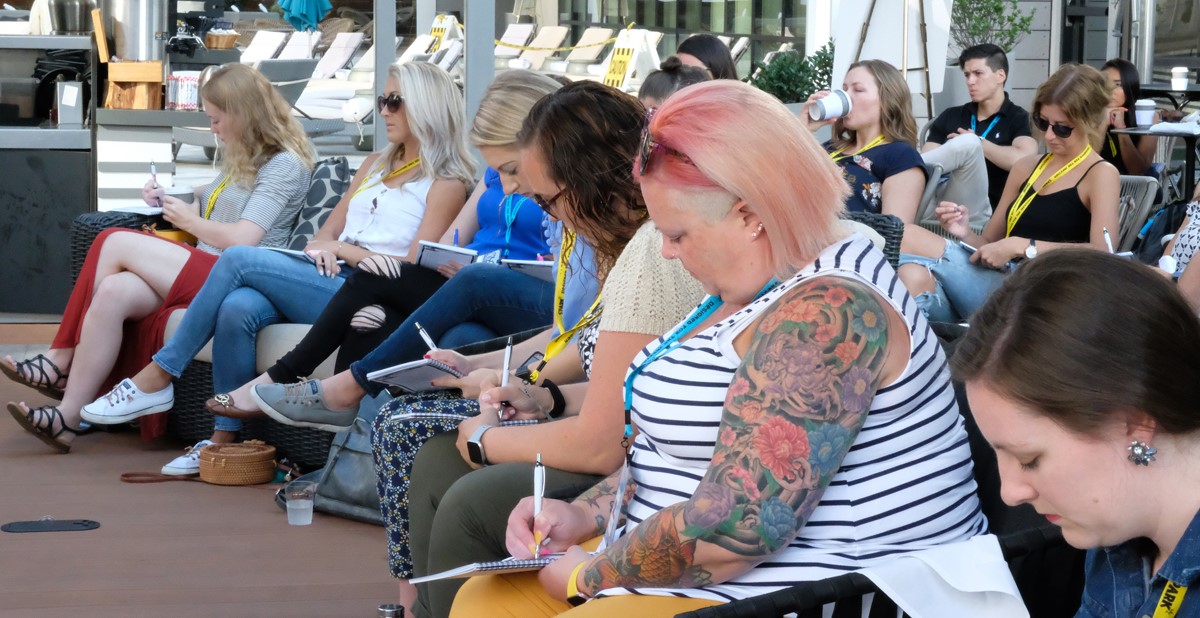 The conference continues today and began with a breakfast session and conference overview on the pool deck of the Omni Charlotte Hotel, led by Jodi Shaw, PPAI’s manager of professional development. Sessions follow throughout the day, including Transparent Accountability To Launch Success led by Bill Petrie, president of PromoCorner; Your Personal Influence On Facilitating Change and Finding Your Voice To Advance Professionally, with the SPARK session led by Mason Linn, CAS, national sales representative for Raining Rose, a member of the workgroup, and Inkrott, and the Ignite session led by Petrie; Overcoming Advertising to Maximize Personal Growth and The Power of You: Storytelling To Engage, Influence and Inspire, led by Petrie; and Increasing Your Leadership Skills Workshop and Tips On Getting Out Of Your Comfort Zone, led by Dr. Leah Flynn Gallant, associate dean and director for student leadership and engagement programs at the Massachusetts Institute of Technology. The group will attend some of these sessions at the NASCAR Hall of Fame, where they’ll test their leadership skills using NASCAR-style simulators. The day closes with a dine-around this evening.