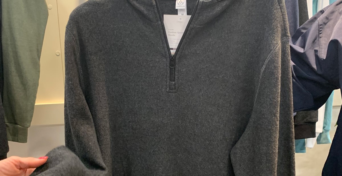 One of the products featured at Hanes’s Alternative Apparel booth is the Eco-Teddy Outdoor Quarter-Zip Hoodie. Made from 50-percent polyester, 46-percent cotton and four-percent rayon, the hoodie is manufactured using organic and recycled materials. Details include a bound hood opening, quarter-zip front, bungee cord with a lock at the hood’s opening and a kangaroo pocket. Available in S-2X in eco black, eco gray and eco canvas.