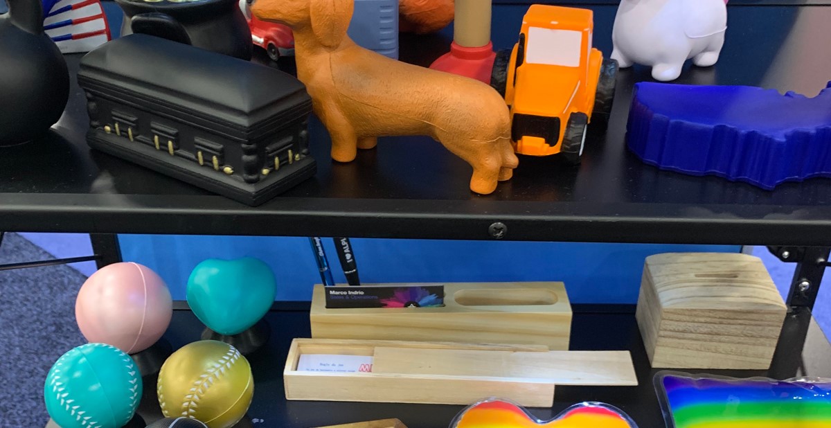 The folks over at supplier Alpi International, Ltd., (PPAI 111221, S8) based in Oakland, California, introduced new looks in hyper-customized, eye-catching stress balls, available in practically any design imaginable. Pictured here are stress products shaped as a dog, unicorn, plunger, coffin, a strand of DNA, the United States and baseballs, among others. New and popular this year, they say, is anything rainbow—pictured are rainbow hot-and-cold gel packs, a product that sold out in the month of June, which is LGBT Pride Month.
