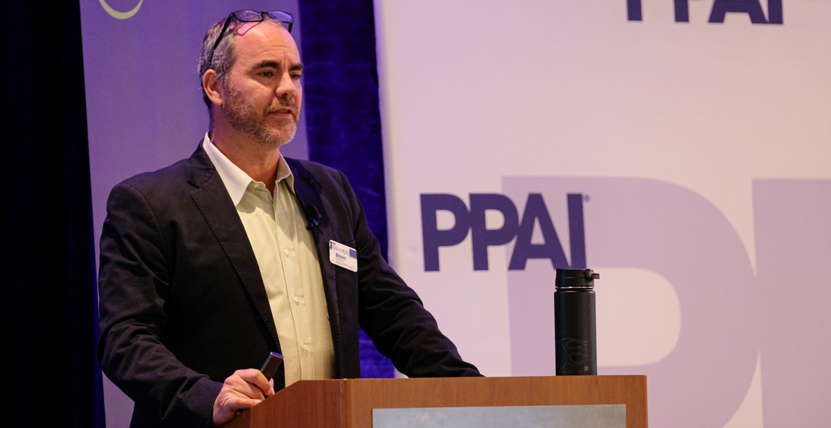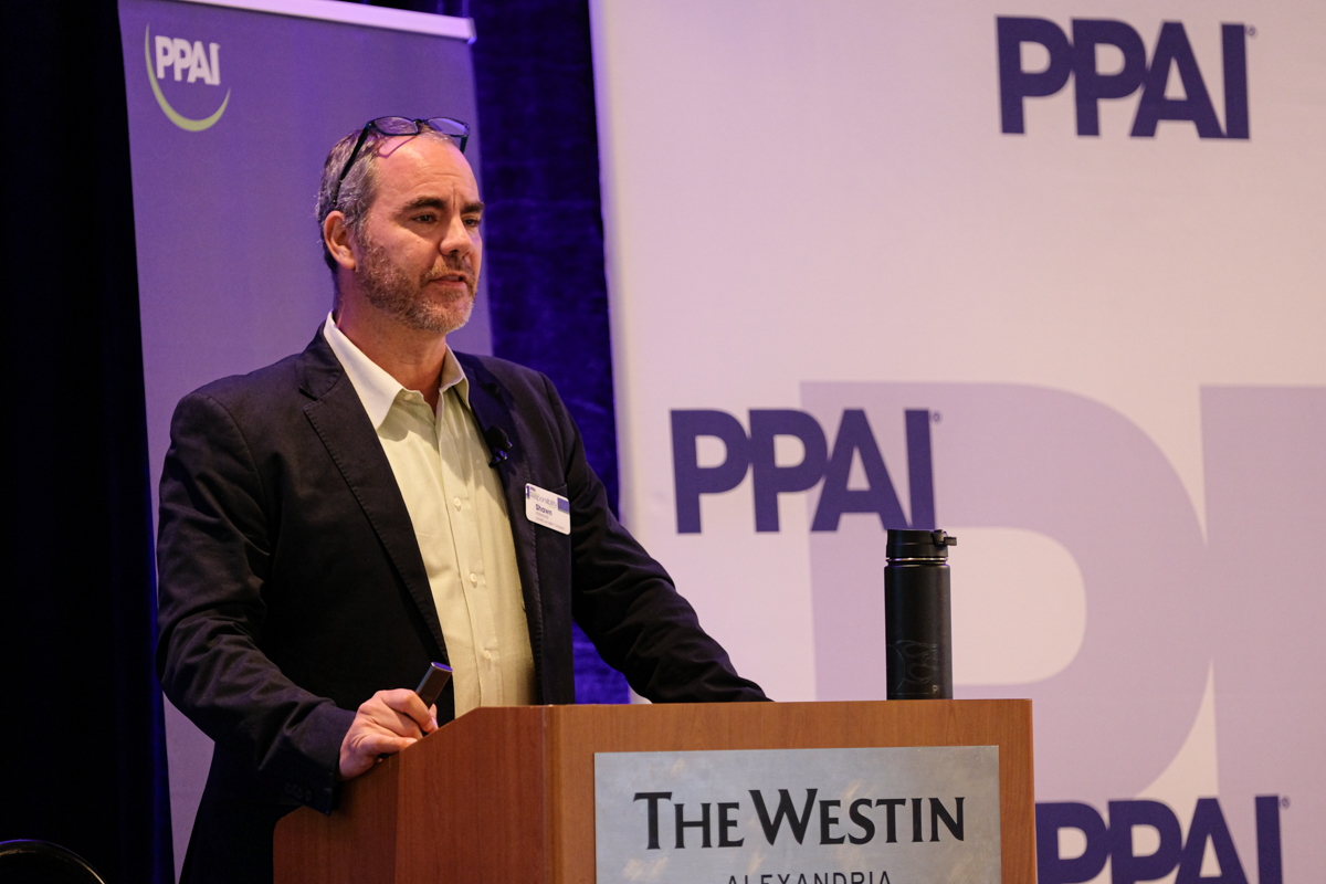 Will Crider, compliance supply chain specialist with platinum event sponsor Wisconsin-based 4imprint, the PPAI 100 No. 1 distributor, says, “I actually work in compliance, so it’s interesting to actually put faces to names and actually get to interface with people. … It’s nice to meet people and also get on the same page with items like PFAS and all the hot-button issues.”